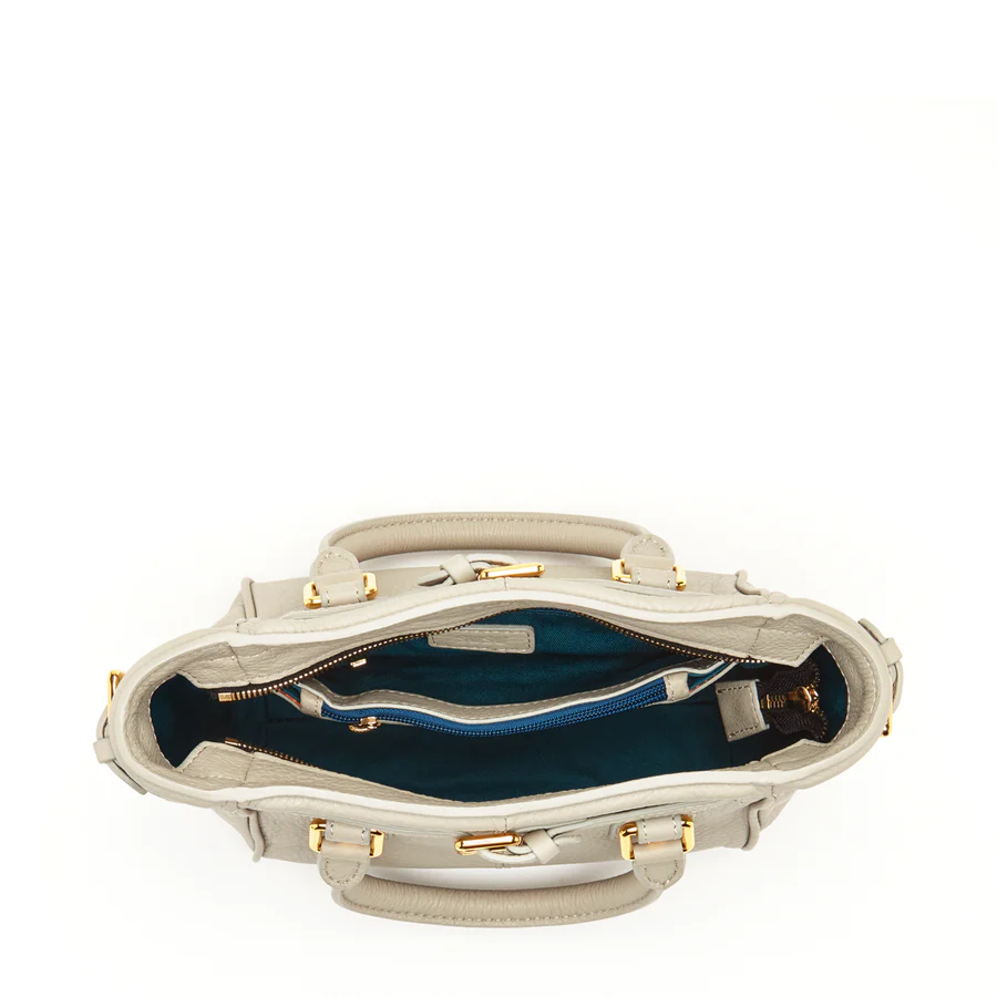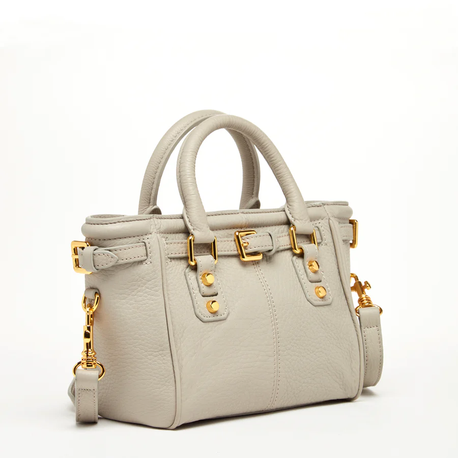 Leather Satchel Bag Grayish Beige